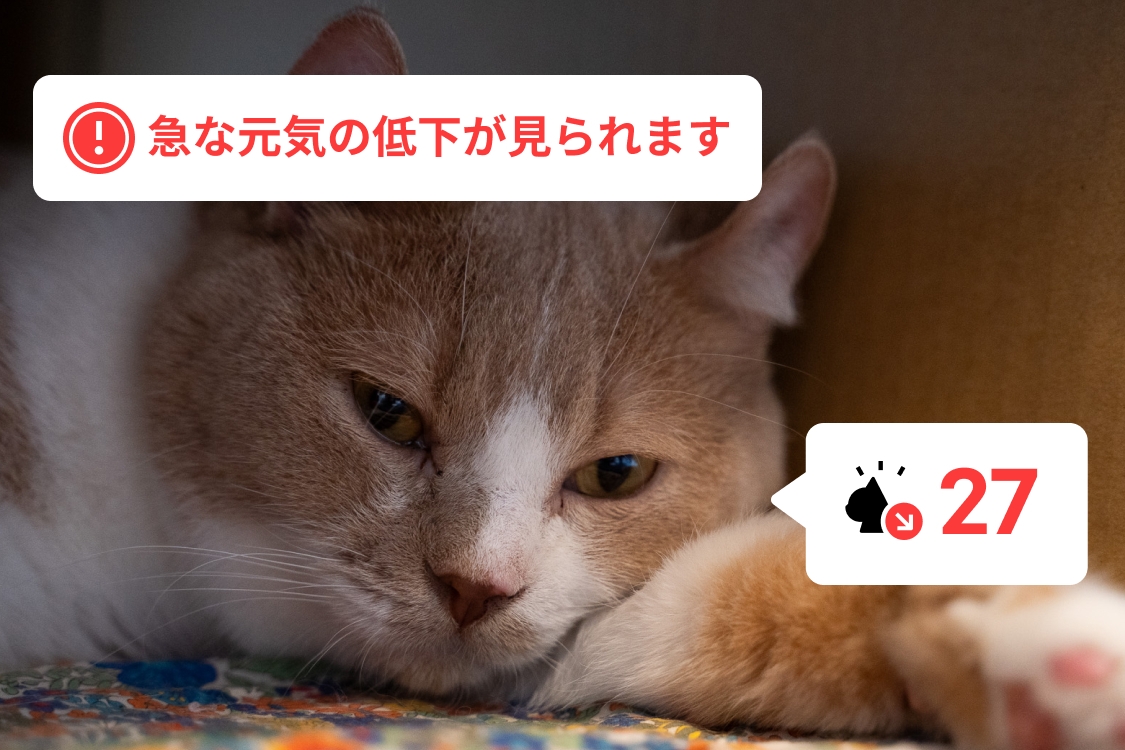 - 獣医師監修のロジックで「元気がない」状態を敏感に検知し、通知