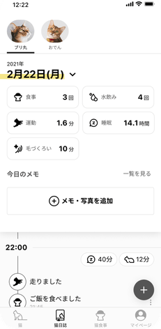 - 愛猫ごとの食事 / 消費のバランス把握で、健全な食事量のコントロールに