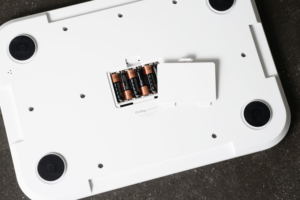 Catlog Boardは乾電池式で完全コードレスです。コードが無いので猫様が噛んでしまう心配もなく、コンセントの位置に左右されず設置できます。また、データ送信には2.4GHz帯のWi-Fi環境が必要です(取得したデータをリアルタイムでアプリ表示するため)ので、ご家庭にWi-Fiがない場合はご用意ください。