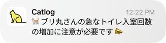 トイレしました通知がくると微笑ましくて、アプリの言葉の端々にも猫愛が感じられるのがとても好感がもてます。実際に膀胱炎に気づけたのもCatlog Boardのおかげで、動物病院でデータを見せたら驚かれ、診察の参考にとカルテと一緒に保管してくれています。